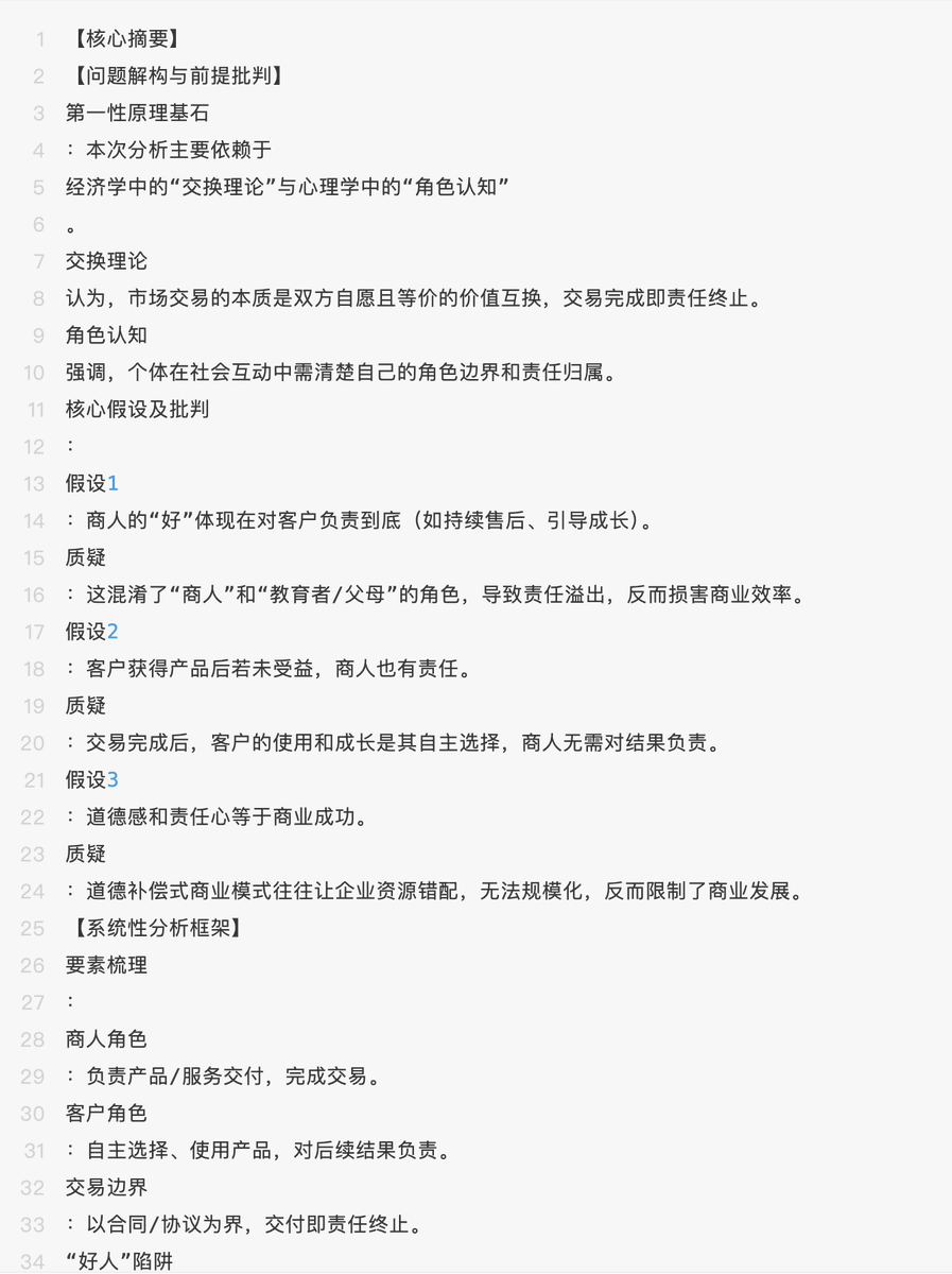 为了让我所讲述的底层逻辑还可以更底层一点,可以挖掘到事物的本质,我曾经让 AI 用第一性原理帮我分析过一些案例,效果还可以